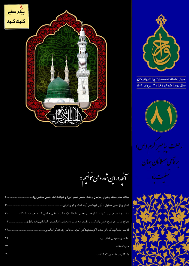 انتشار هشتاد ویکمین شماره هفته نامه سفارت جمهوری اسلامی ایران در واتیکان